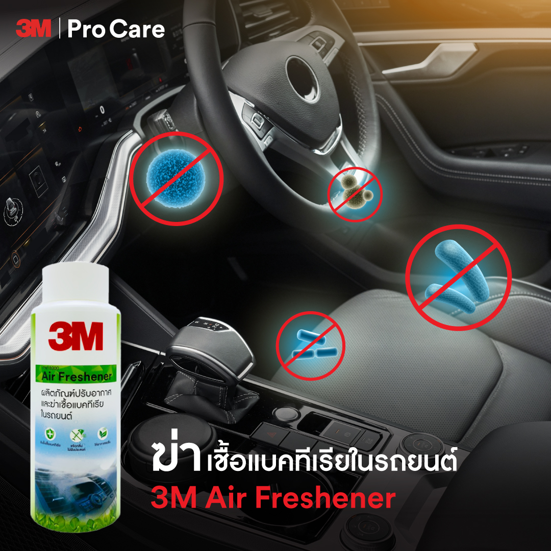 3M Air Freshener น้ำยาปรับอากาศสูตรพิเศษ ที่มาพร้อมคุณสมบัติโดดเด่น สามารถฆ่าเชื้อแบคทีเรียได้ถึง 99% ช่วยลดกลิ่นฟอร์มาลดีไฮด์ในห้องโดยสาร ลดกลิ่นของก๊าซแอมโมเนียและไฮโดรธออน อีกทั้งยังกำจัดสาร VOCs ซึ่งเป็นสารก่อมะเร็ง ที่เกิดจากการระเหยของพลาสติกในรถ แถมให้ความสดชื่นด้วยกลิ่นแอปเปิลอ่อน ๆ โดย 3M Air Freshener ใช้กับเครื่องพ่นหมอกให้แทรกซึมเข้าถึงทุกซอกมุมภายในห้องโดยสารรถ รวมทั้งช่องแอร์ได้อย่างมีประสิทธิภาพและไม่มีสารตกค้าง